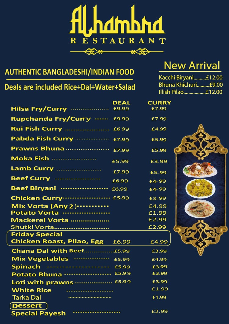 Welcome to Alhambra Restaurant, a hidden gem located at 120 Whitechapel Rd, London. Here, authentic flavors meet warm hospitality. Their new arrivals, including Kacchi Biryani and Illish Pilao, excite the palate, while the cozy atmosphere makes you feel right at home.